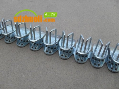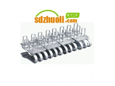 一、產品用途:強度等級不大于1000N/mm織物帶芯輸送帶的聯(lián)接。二、產品特點:1、連體式帶扣:接頭受力分布均勻,使用壽命長;接頭直線度好,便于接頭對接;2、“V”形扣釘布置:減少輸送帶裝訂截面的損傷,使接頭強度高;3、獨特的板式扣體:扣體低平、扇形導入面減少